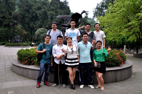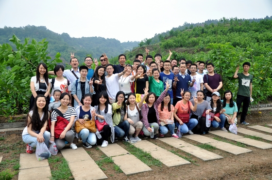 旅行的第一個目的地,大邑果園,采摘桑果。一進入果園,大家就迫不及待的拿著袋子準備“大干一場”。呼吸著來自泥土的味道,看著果園里熟透的桑果,翠綠的一大片果林,大伙兒三五成群,都紛紛奔向果林深處,似乎想要采得一籃勝利的果實,一較高下。整個果林,時不時傳來某位同志激動的笑語,溫馨和諧的一幕幕場景,不禁讓人感受到來自方法這個大家庭的溫暖。