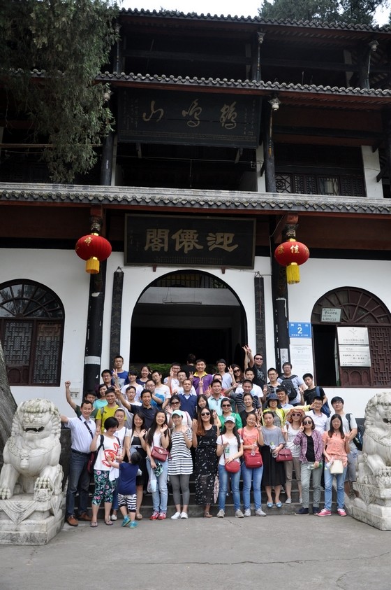 一個閑適上午,就這樣悄然而去,大伙兒帶著勝利的果實,滿載而歸。簡單的午餐后,休憩片刻,我們開始了今天的登山之旅——鶴鳴山。鶴鳴山是舉世公認的中國道教發(fā)源地,世界道教的朝圣地,被稱為“道國仙都”、“道教祖庭”。這里山勢雄偉、林木繁茂,雙澗環(huán)抱,形如展翅欲飛的立鶴。從山麓起有石級數(shù)千,拾級而上直達山巔,大家成群結(jié)伴,激動的向著山頂最高處前行。登山途中,大家相互間拍照留念,呼吸著新鮮空氣,身體的疲憊已經(jīng)被大自然帶來的清新和愜意所代替。置身大山的懷抱,感受濃濃的道教氣息,大伙兒都沉浸在這靜謐的山水之間,盡情享受著旅行中的樂趣。